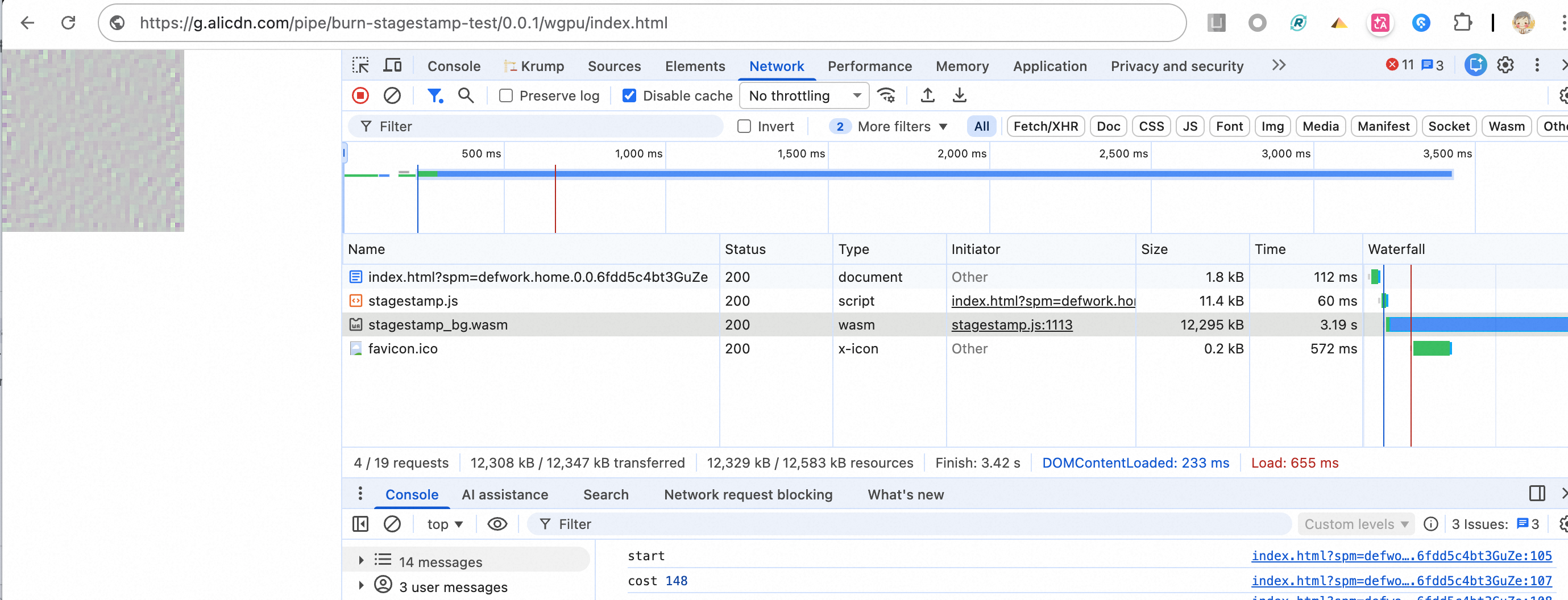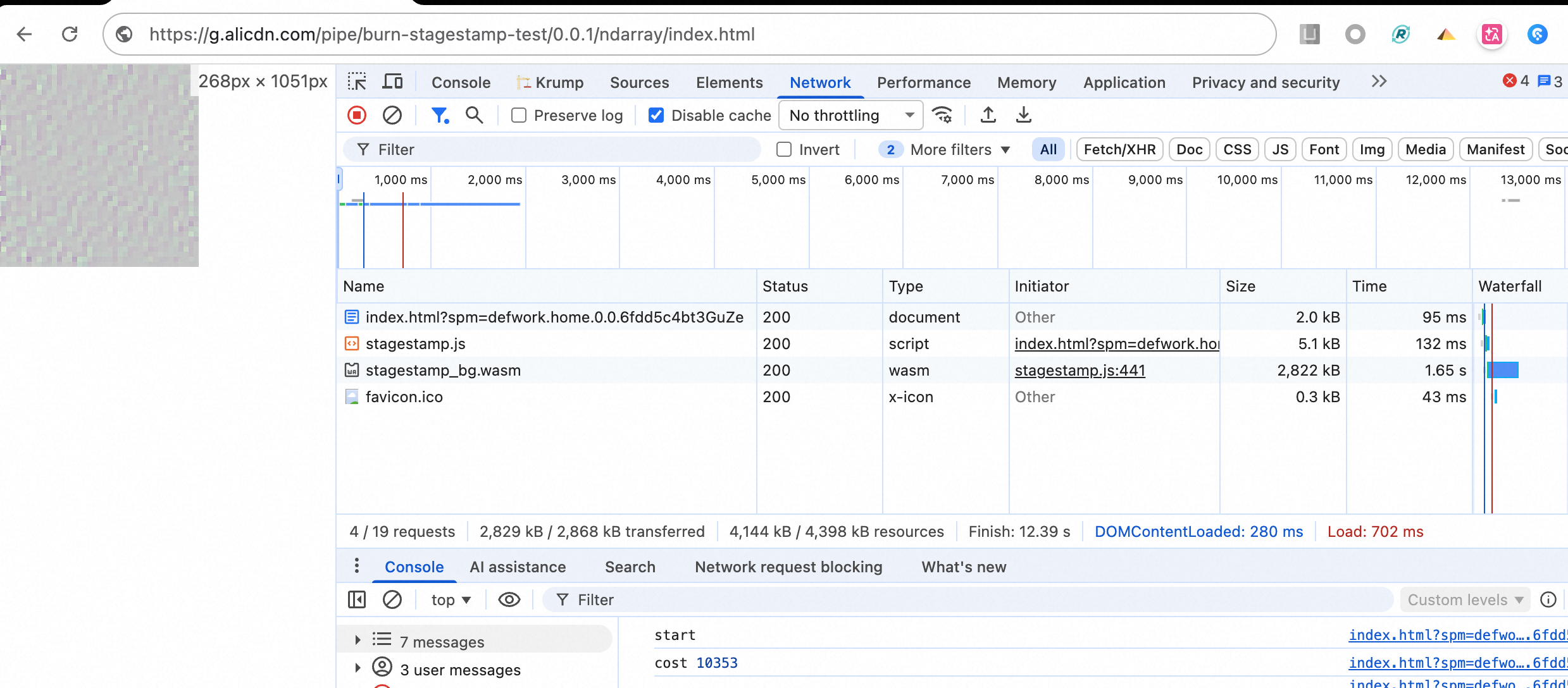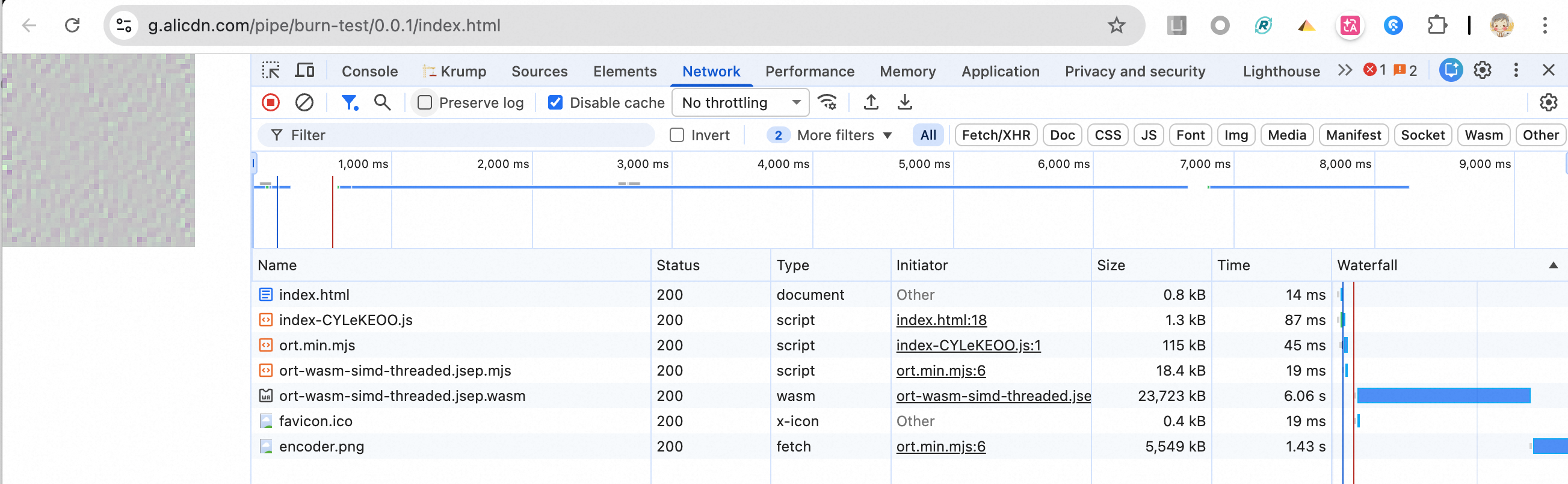 - Burn CPU:体积最小(3MB,仅包括模型需要的算子),但推理慢(10s),在不支持 WebGPU 下可结合 Worker 考虑
